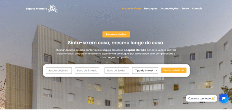 A Lapsus Moradia é uma plataforma desenvolvida para facilitar a conexão entre anfitriões e hóspedes durante eventos regionais, como o São João de Assú. O projeto foi pensado para destacar imóveis disponíveis de forma clara, acessível e intuitiva, com foco na conversão e no atendimento direto via WhatsApp.